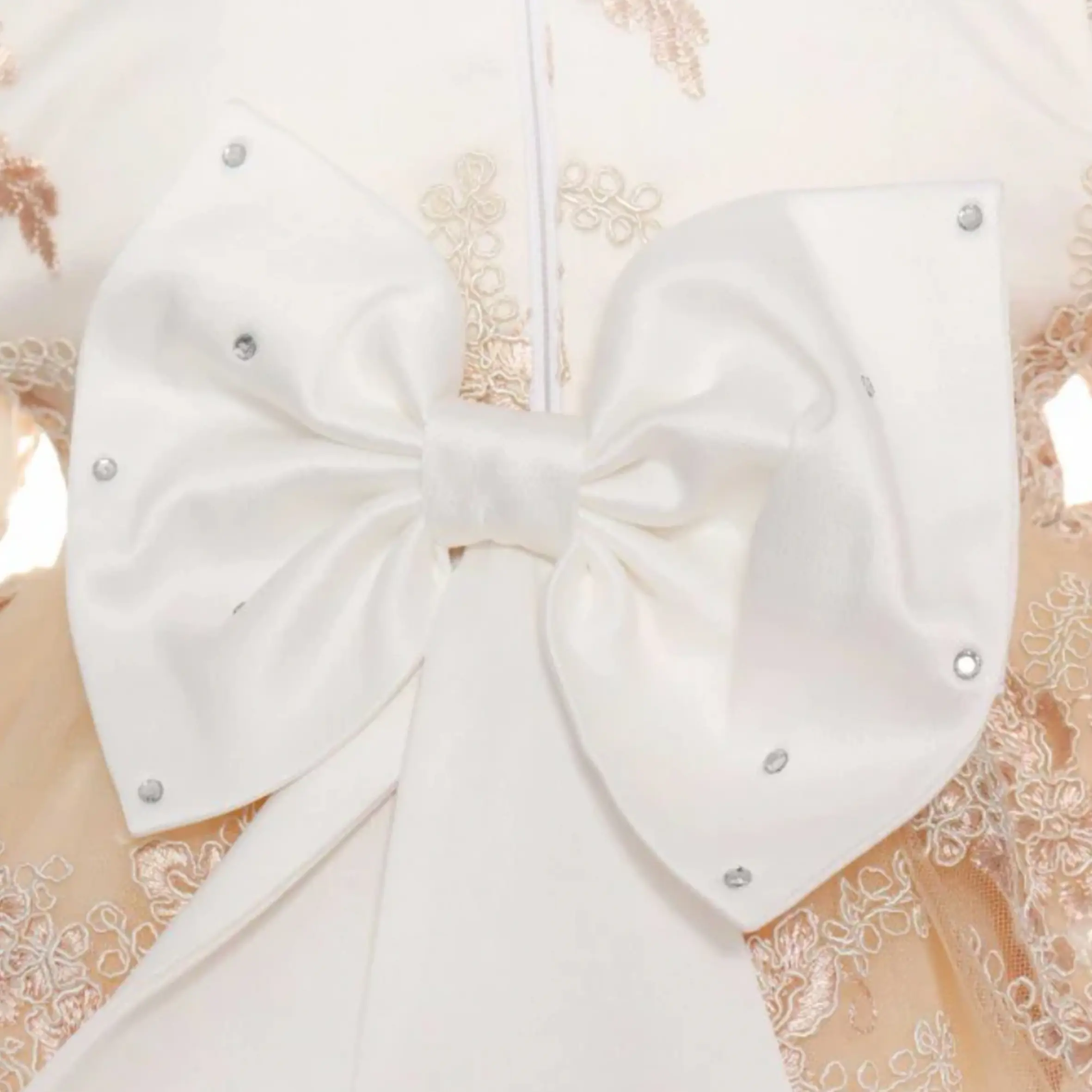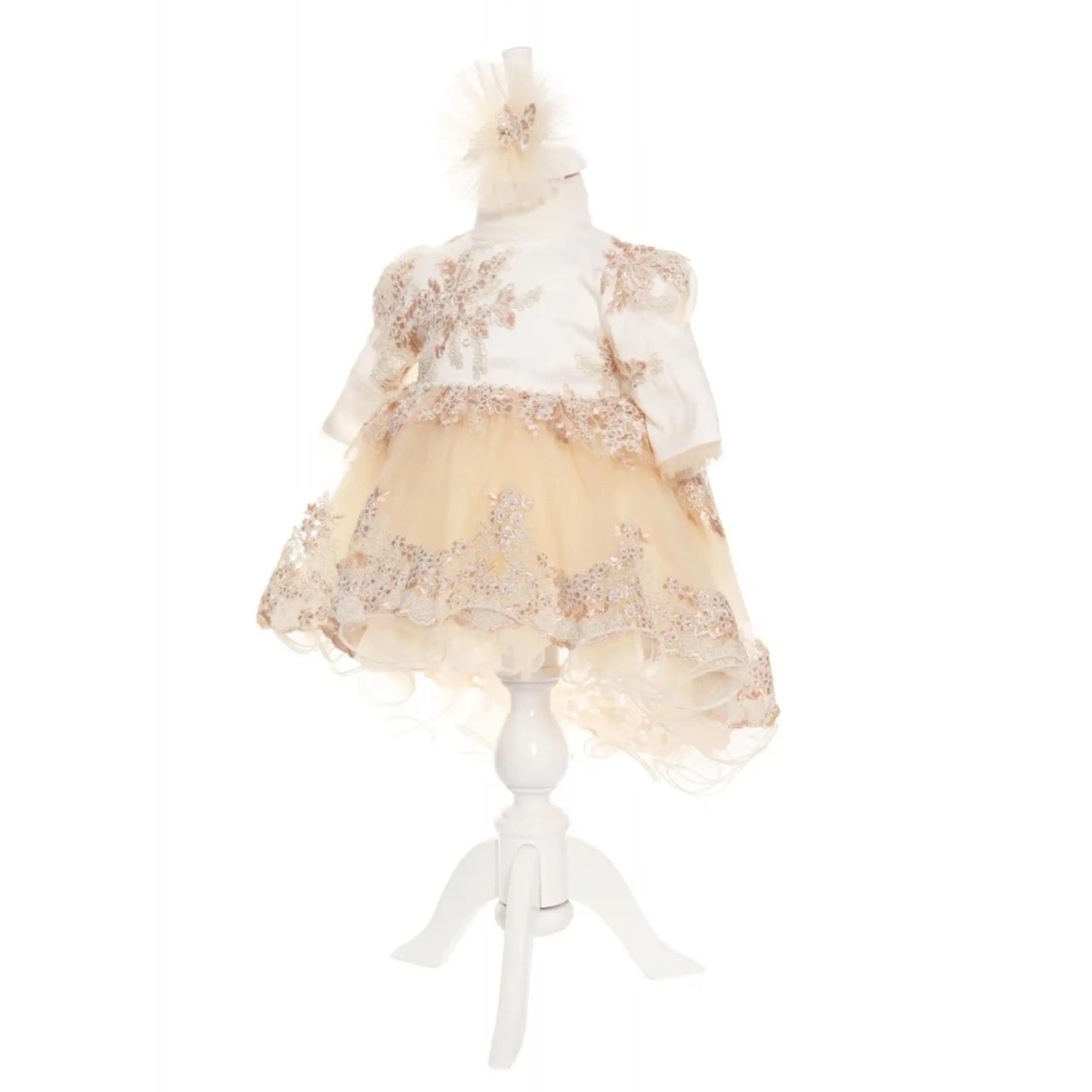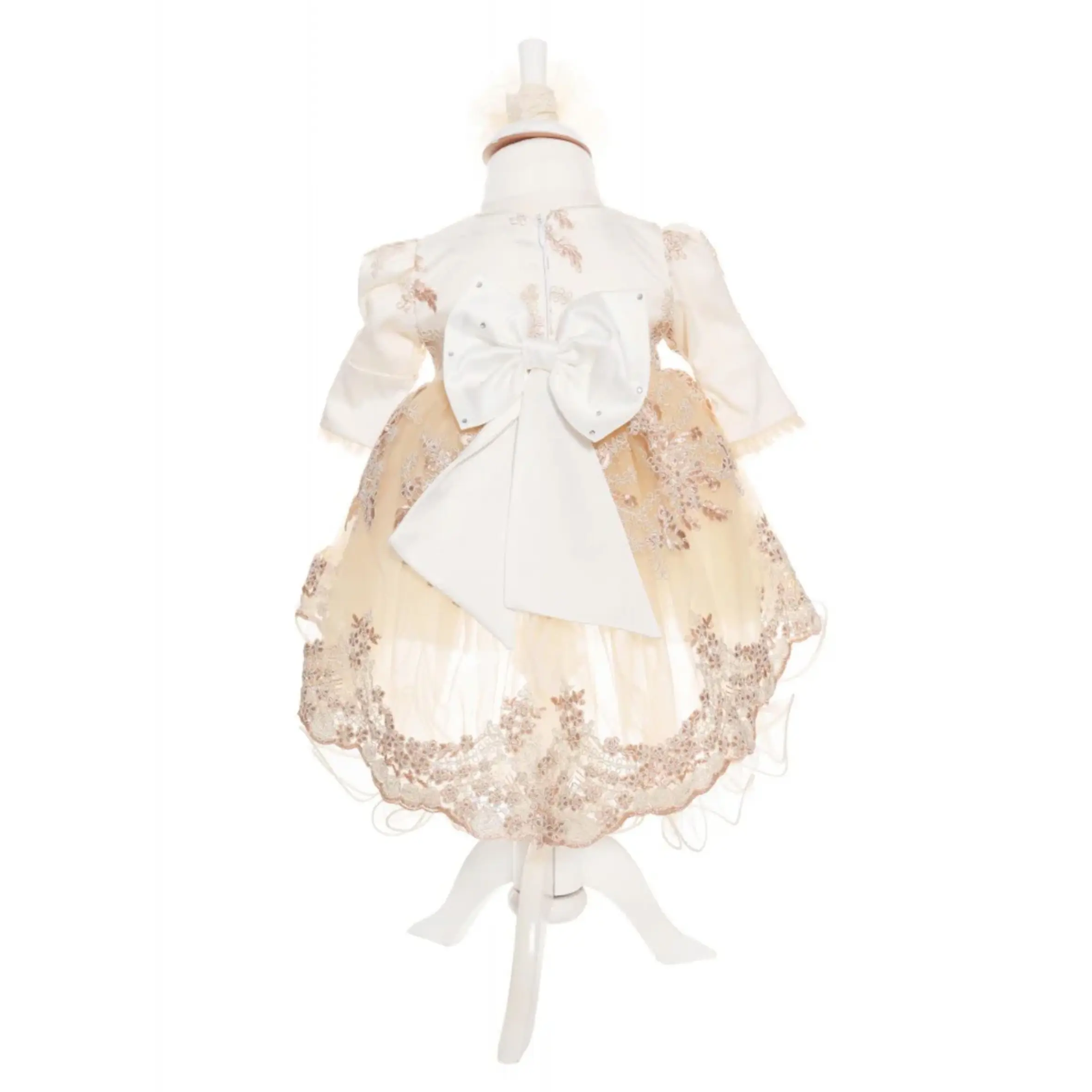 Designul rafinat și detaliile atent lucrate transformă această rochiță de botez într-o piesă de colecție. Fiecare cusătură, fiecare aplicație delicată și fiecare panglică este gândită pentru a oferi un aspect de poveste, fără a compromite confortul bebelușei. Rochița are o croială lejeră, care permite libertate de mișcare, iar materialul respirabil asigură un confort optim pe tot parcursul zilei.