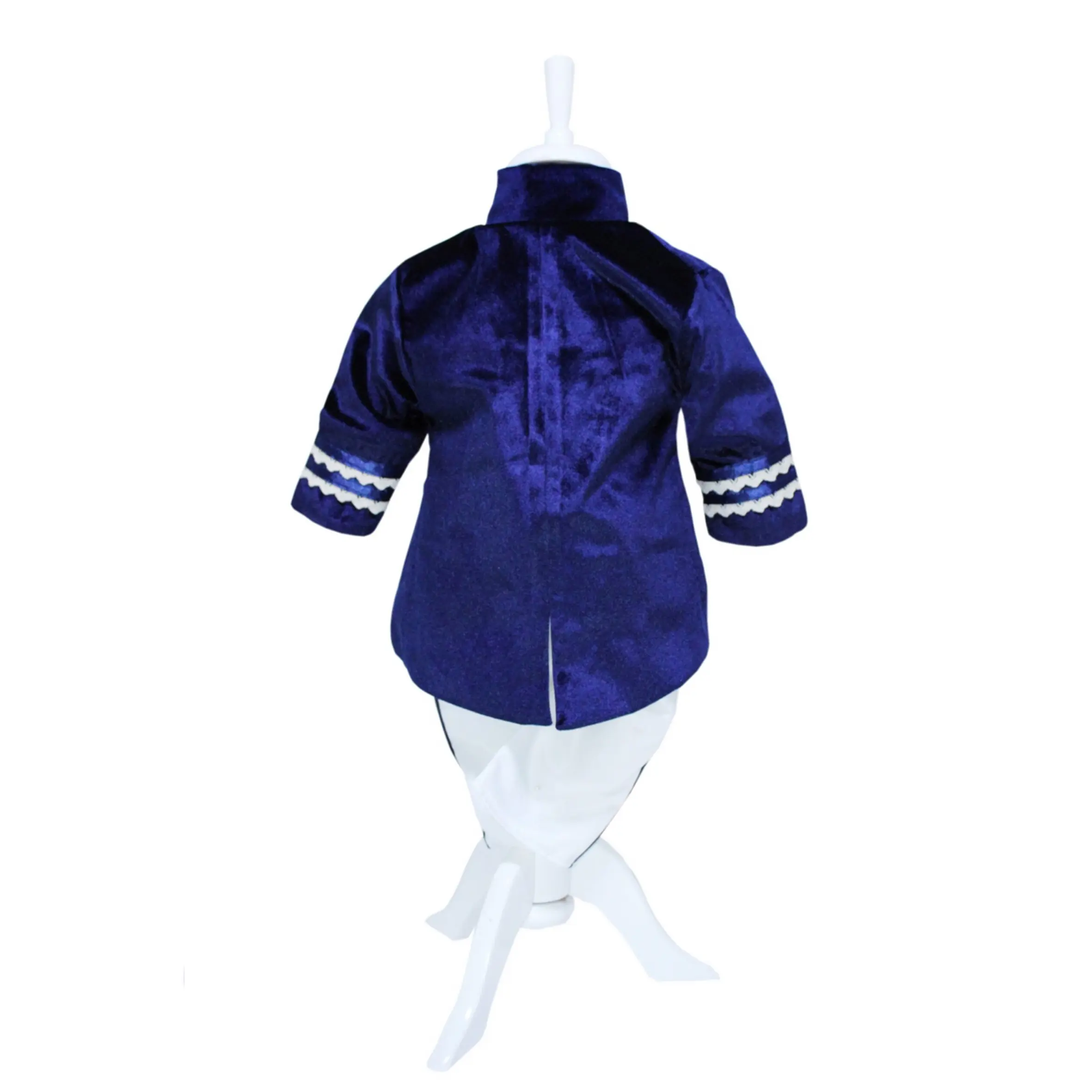 1. Sacou – este din catifea, tip tunică, cambrată, evazată, închisă până sub gât și cu șliț la spate. Pe piept se găsesc detalii de dantelă, bandă satin și nasturi aurii.